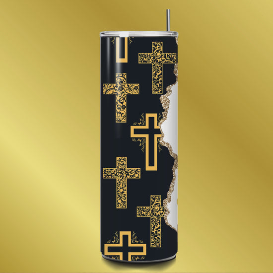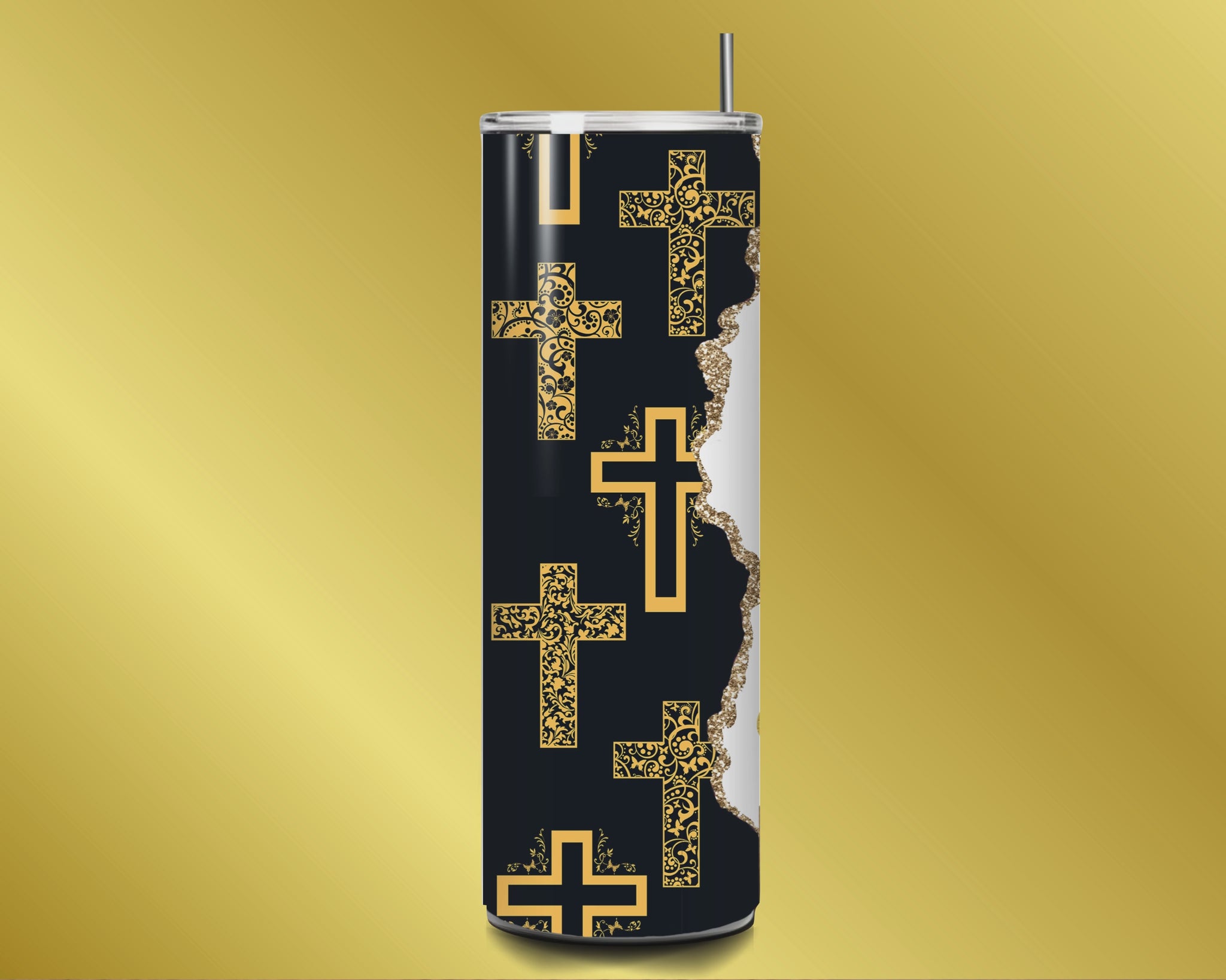 This distinguished "God is Our Refuge" tumbler presents a luxurious black canvas adorned with meticulously rendered gold crosses and the profound scripture from Psalm 46:1. The contrast between the deep black background and luminous gold elements creates a visually striking vessel that honors faith with sophistication. Precision-crafted for both spiritual inspiration and beverage preservation, this tumbler represents the perfect intersection of devotional significance and practical elegance.