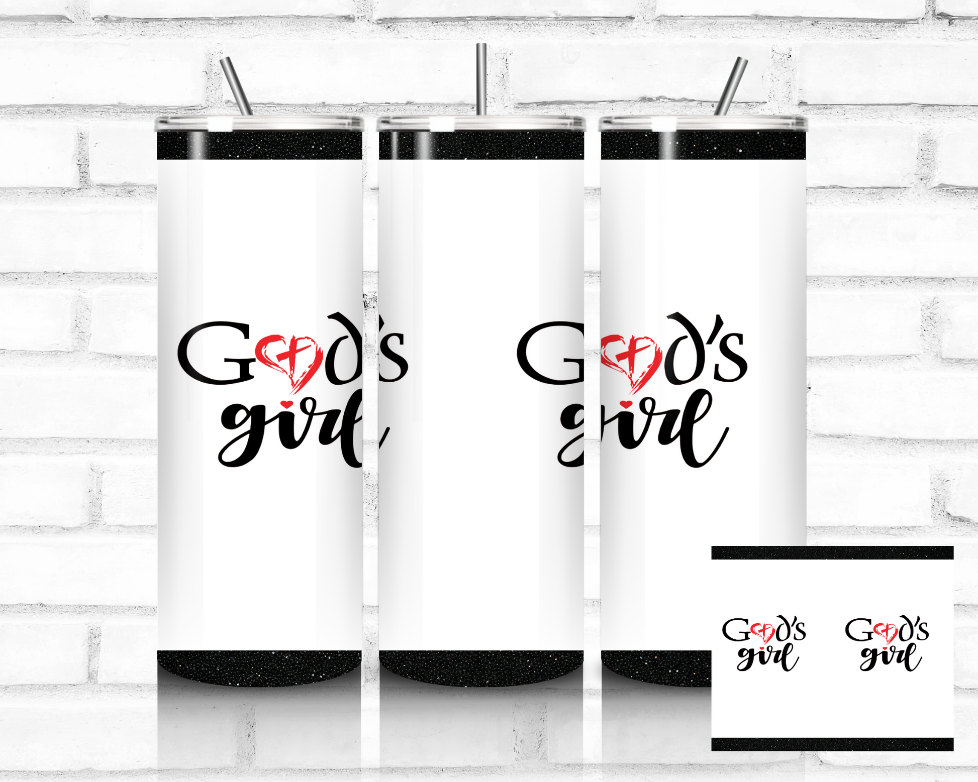 This "God's Girl" Tumbler in black with a touch of red, is the perfect accessory for any faithful woman. Made from durable materials, it features a stylish design that proudly proclaims your faith. Its insulated design keeps your drinks at the perfect temperature, making it ideal for daily use or special occasions. Show your love for God while staying hydrated with this beautiful tumbler.