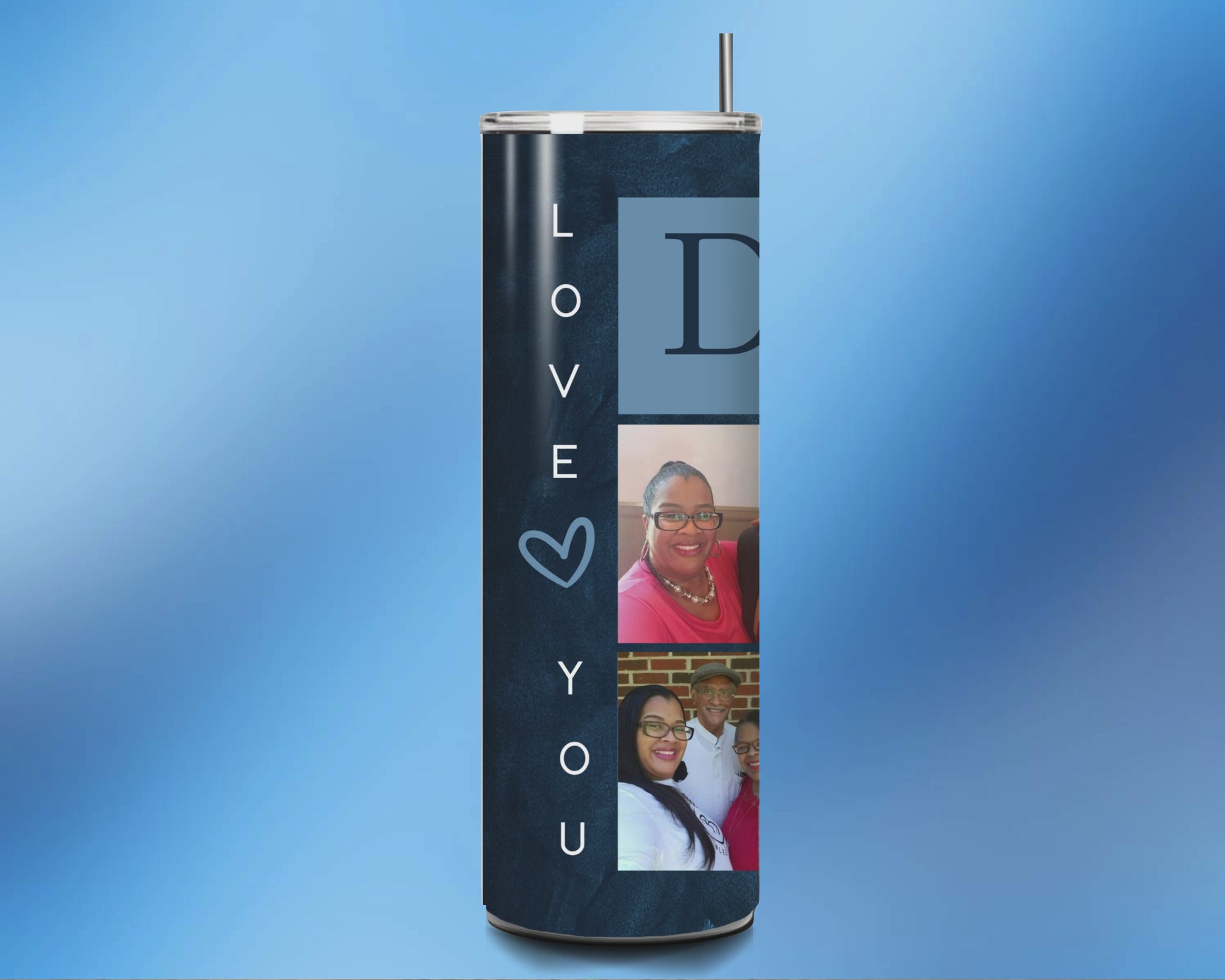 This personalized "DAD" tumbler is not just a practical drinking vessel, but also a meaningful and thoughtful gift. With space for 6 photos, it allows you to customize and showcase your love and appreciation for the special guy in your life. This amazing tumbler allows DADs to carry their memories with them wherever they go. Perfect for keeping drinks cold or hot on the go. Includes metal straw and cleaning brush.