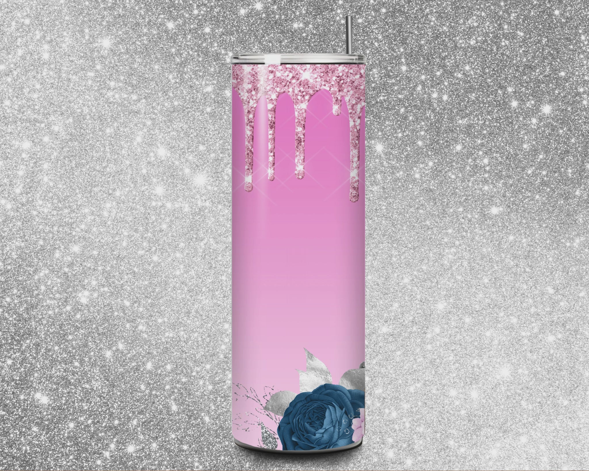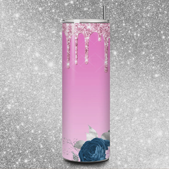 "Pink Drip Blue Floral Tumbler"